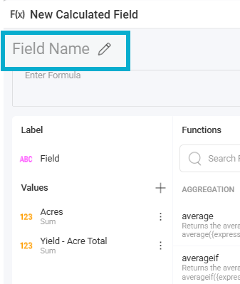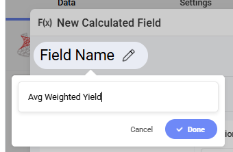 - Name your field - this will display on your visual so choose well. I’ll use “Avg Weighted Yield”