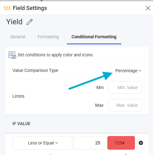 3. Select either Percentage or Number