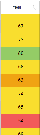 You can see these cells are now color coded based on yield as compared to the other grower's data in the dataset: