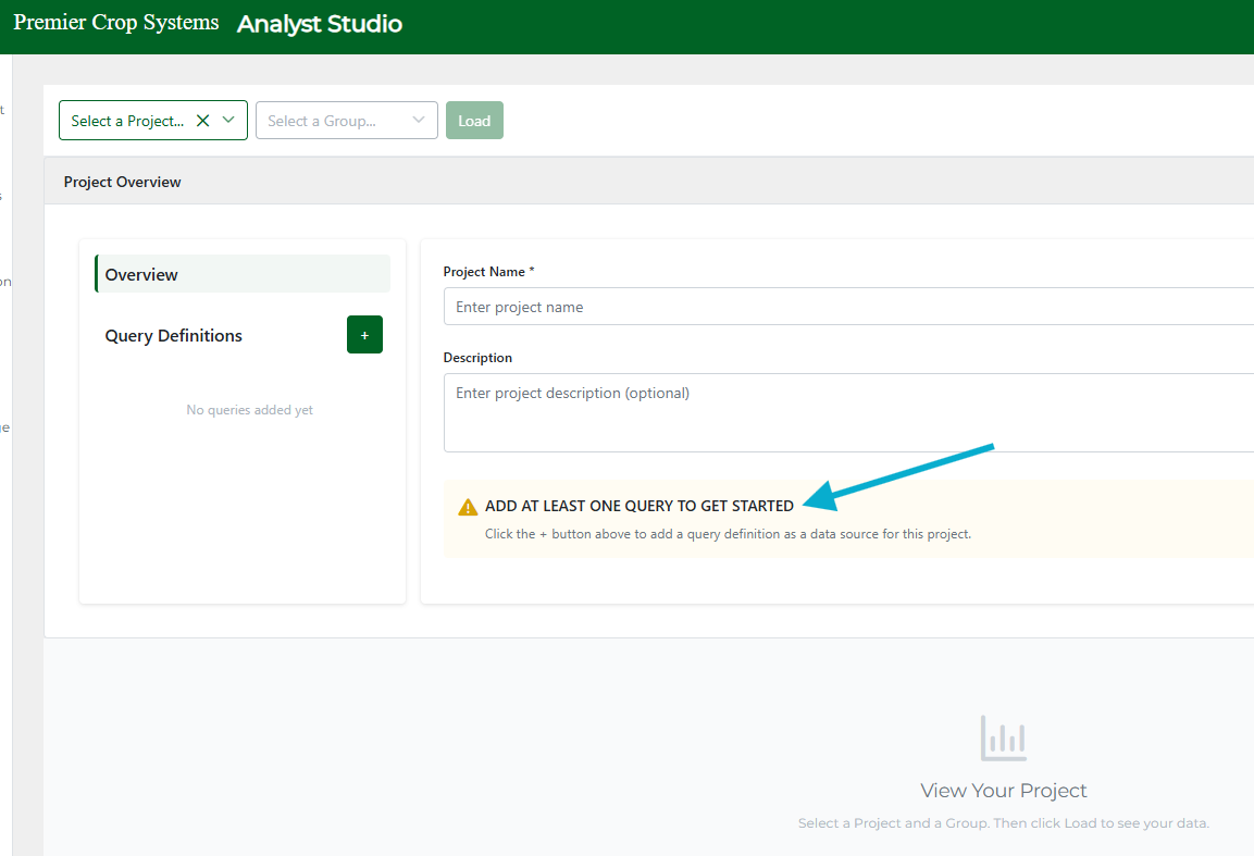 To do so, click the green "+" next to Query Definition and select a query that contains data you'd like to view. You can add multiple, or maybe you just made one giant queries with lots of attributes and measures!