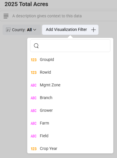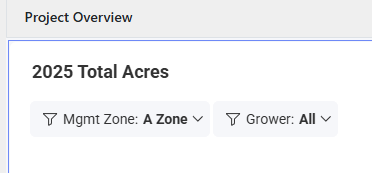 For instance, in the example below, the Management Zone filter was created first, and the Grower filter was created after that one. After selecting only A Zone in Management Zone, the Grower list changes to only display Growers with A Zones